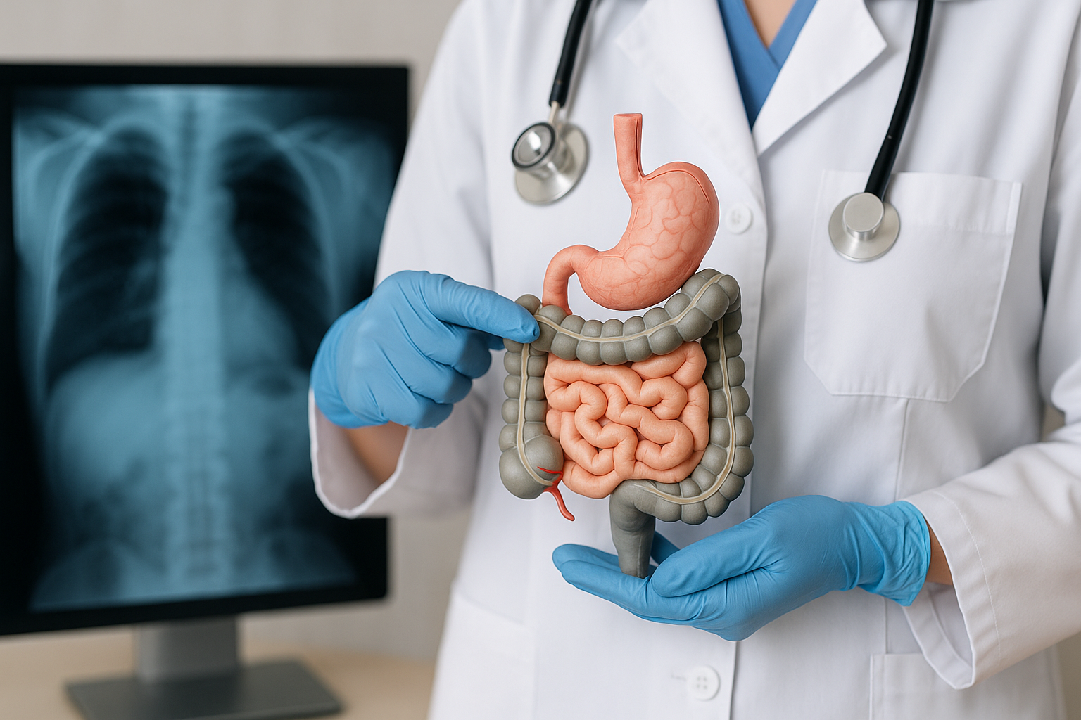 Diagnosis begins with a detailed evaluation of symptoms such as abdominal pain, bloating, diarrhea, constipation, gas, weight loss, fatigue, rectal bleeding, or changes in stool patterns. Laboratory tests—including stool analysis, inflammatory markers, anemia screening, and celiac antibodies—help identify infections, inflammation, bleeding, or nutrient absorption issues. Imaging methods such as abdominal ultrasound, CT, MRI, and contrast studies may be used to visualize structural abnormalities.